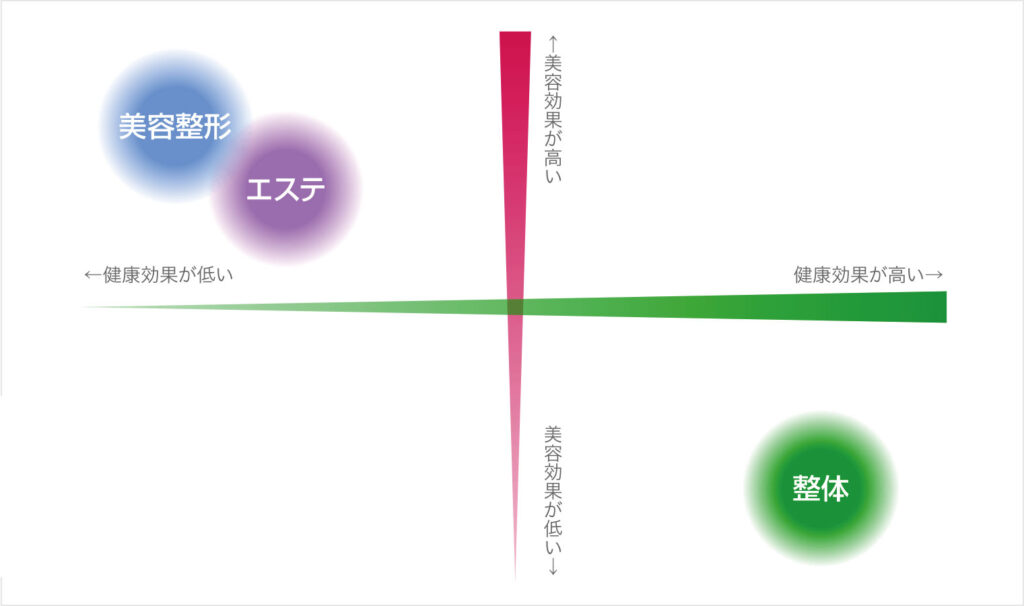 しかし、実際のところ身体が歪む→身体がたるむ、プロポーションが崩れる、代謝が落ちる肋骨の歪み、内臓の不調→顔のくすみなど、これらはほんの一例で、原因としてはまだまだたくさんあります。